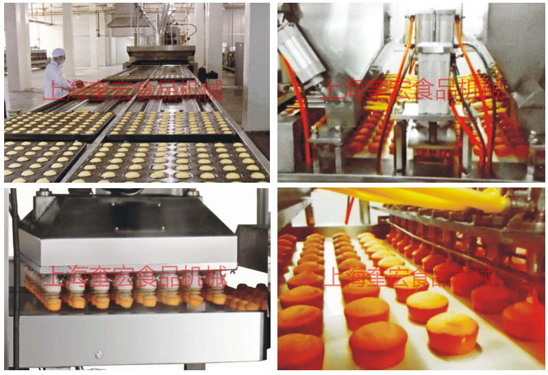 主要功能及用途 全自動模盤注芯蛋糕、蛋黃派生產線我廠根據歐洲先進的設備基礎上,綜合國內情況小作坊生產,保質期短,人工多而研制開發的。自動生產線集電、光、氣、機于一體自動化程度高,產量大、人工少、且對產品的人工接觸少,保質期長等優點,深受廣大食品廠家青睞。本成套設備分為五部分:面糊攪拌、成型烘爐、注芯、冷卻殺菌、包裝組成。(另外還可以組合成半自動、大產量生產線),可選擇不同類型的隧道爐(如電力、燃油、燃氣、導熱油)。