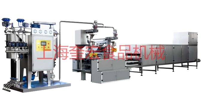 8、選裝巧克力定量加注系統可生產巧克力夾芯糖果;